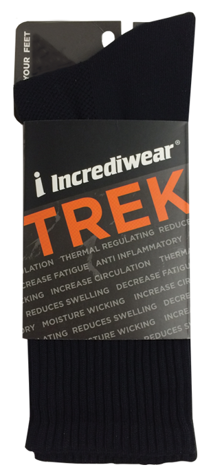 The Incrediwear Trek Socks relieve aches and fatigue for those spending long hours on their feet. Their comfortable design provides a cushioned feel while retaining breathability to ensure all-day comfort. Although they were originally designed for outdoor activities they are enjoyed by active people everywhere.